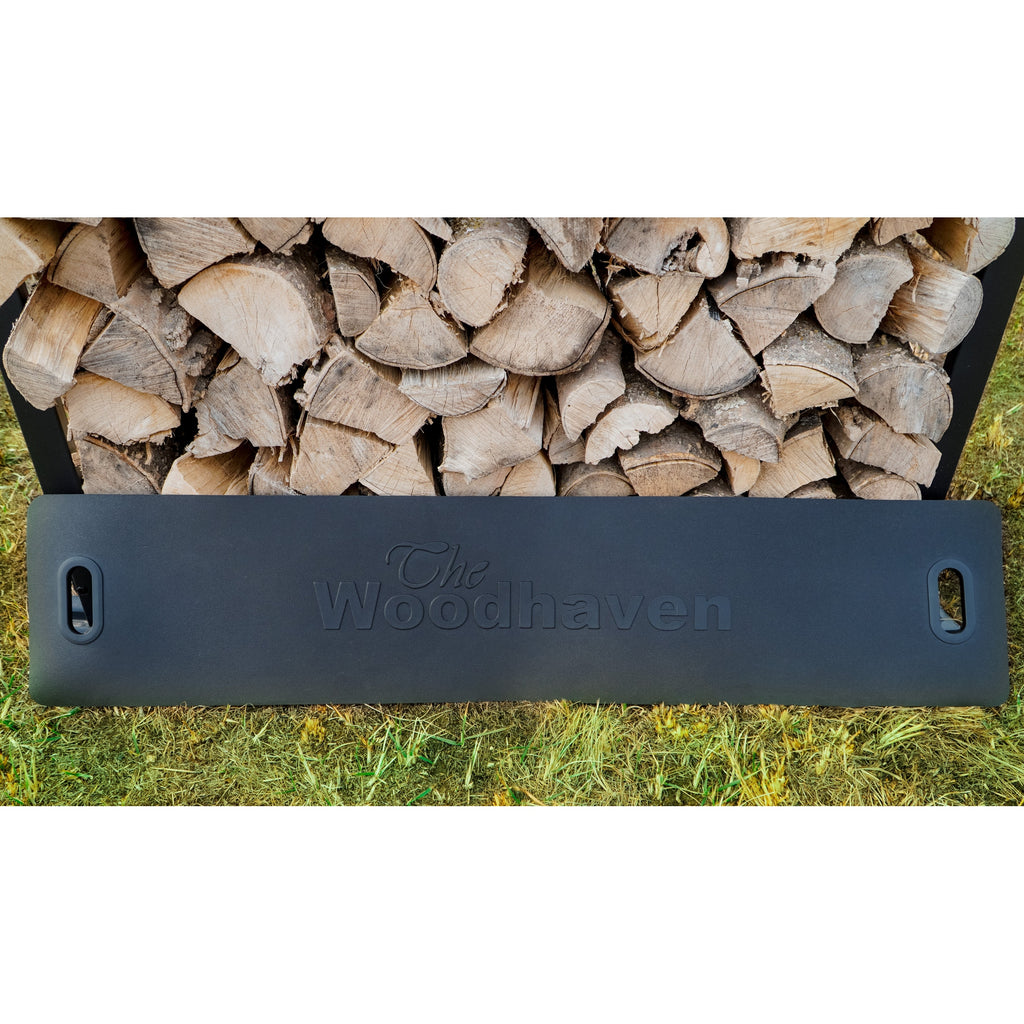 is the perfect accessory to compliment any of our fine Woodhaven Firewood Racks. This log carrier is made out of waterproof Vyram, which is the same material the "Big Three" auto makers use to make their floor mats and door-ding panels. The strength and durability of The Woodhaven Log Carrier will outlast any sewn product on the market. Comfort handles fold in to easily carry any size firewood load. The carrier is branded with our "Woodhaven" logo.