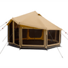 A bell tent reimagined, the Altimus boasts stand-up space all around the tent, and is a truly 4-season shelter with stove and AC compatibility, as well as large windows for panoramic views.